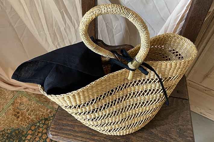 当店でも人気の籠バック、口が大きく開いて使いやすいのが魅力なのですが