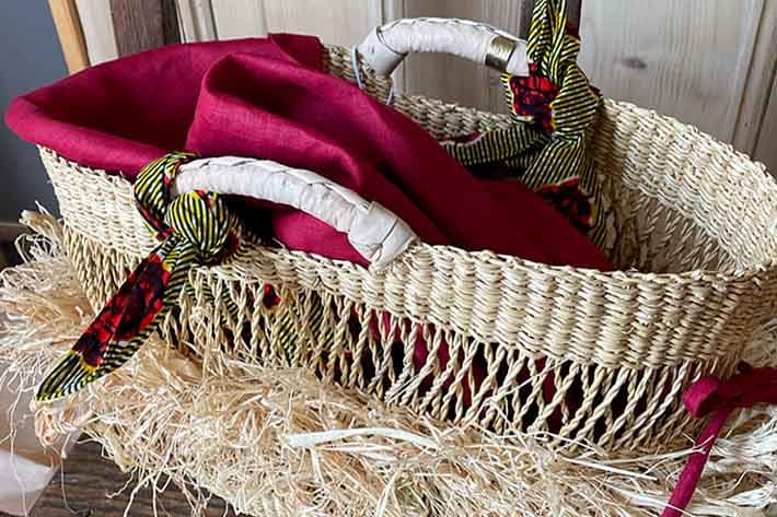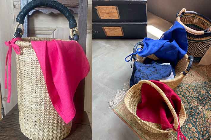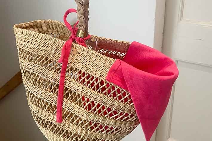 籠バックの目隠しに最適な薄手紐付きクロス