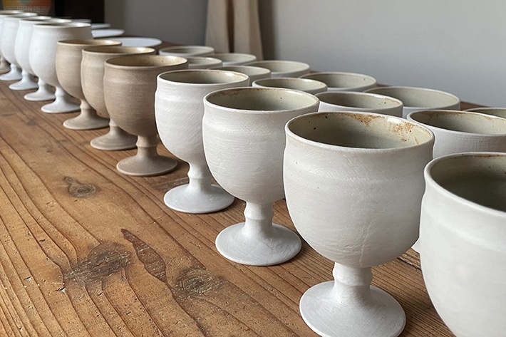 重ねた刷毛目のやわらかな白と、ふっくらとした丸みが印象的なゴブレット。